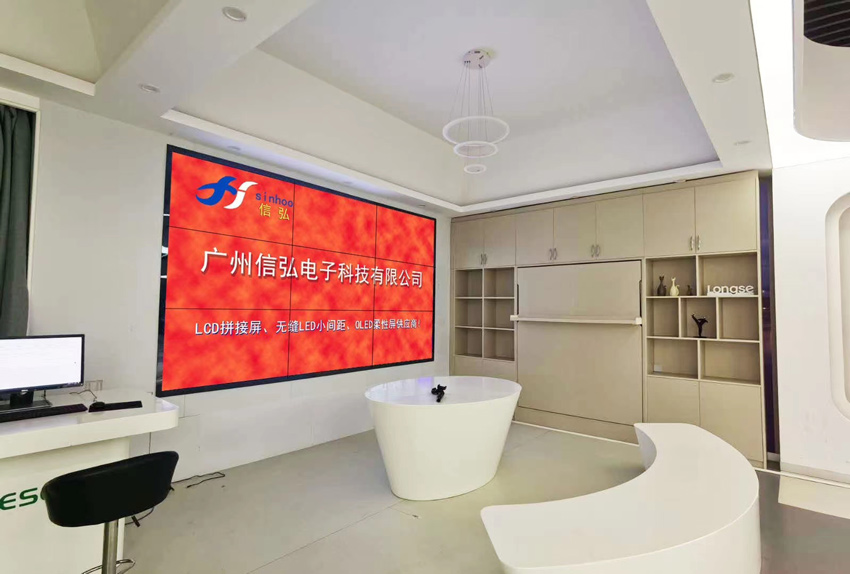 近日該集團科技體驗館再次全新升級智慧展廳,信弘為其智慧展廳打造了一款55寸(S55-XHL2ME),3.5mm拼縫液晶拼接屏 3x3的拼接方式